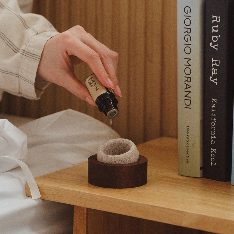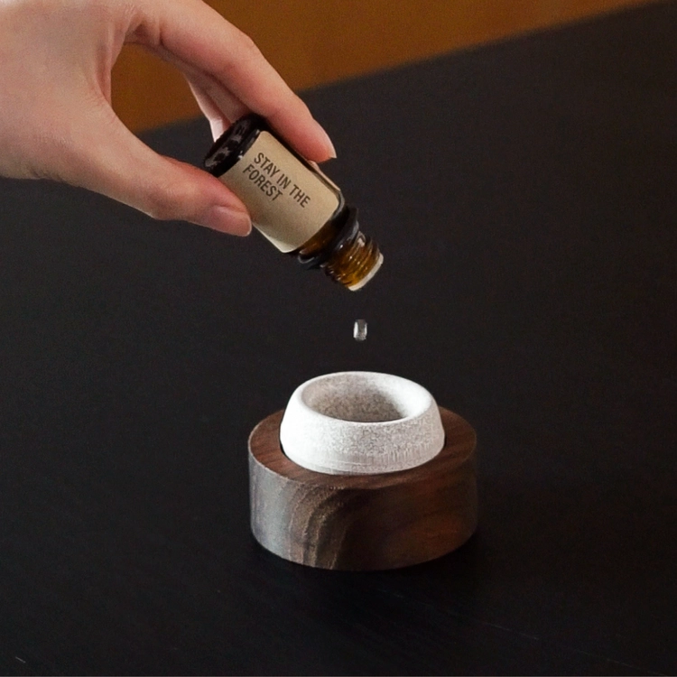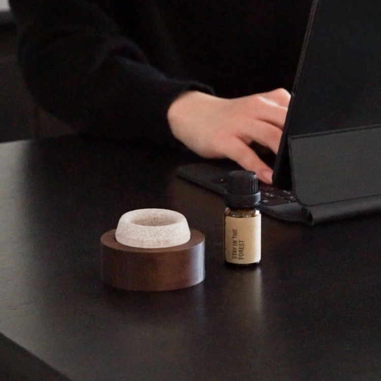 천연 규조토와 월넛 원목으로 완성한 프리미엄 향의 오브제.